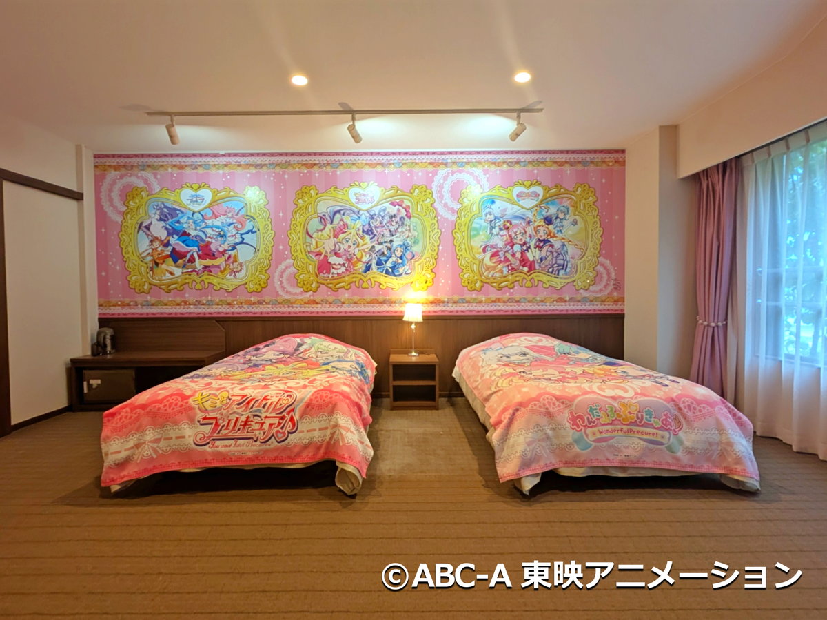 ホテルのプリキュアルームは部屋の中でコスプレ写真を撮ることもできて、スキーの後も楽しい時間を過ごせます✨男の子には仮面ライダールームも。