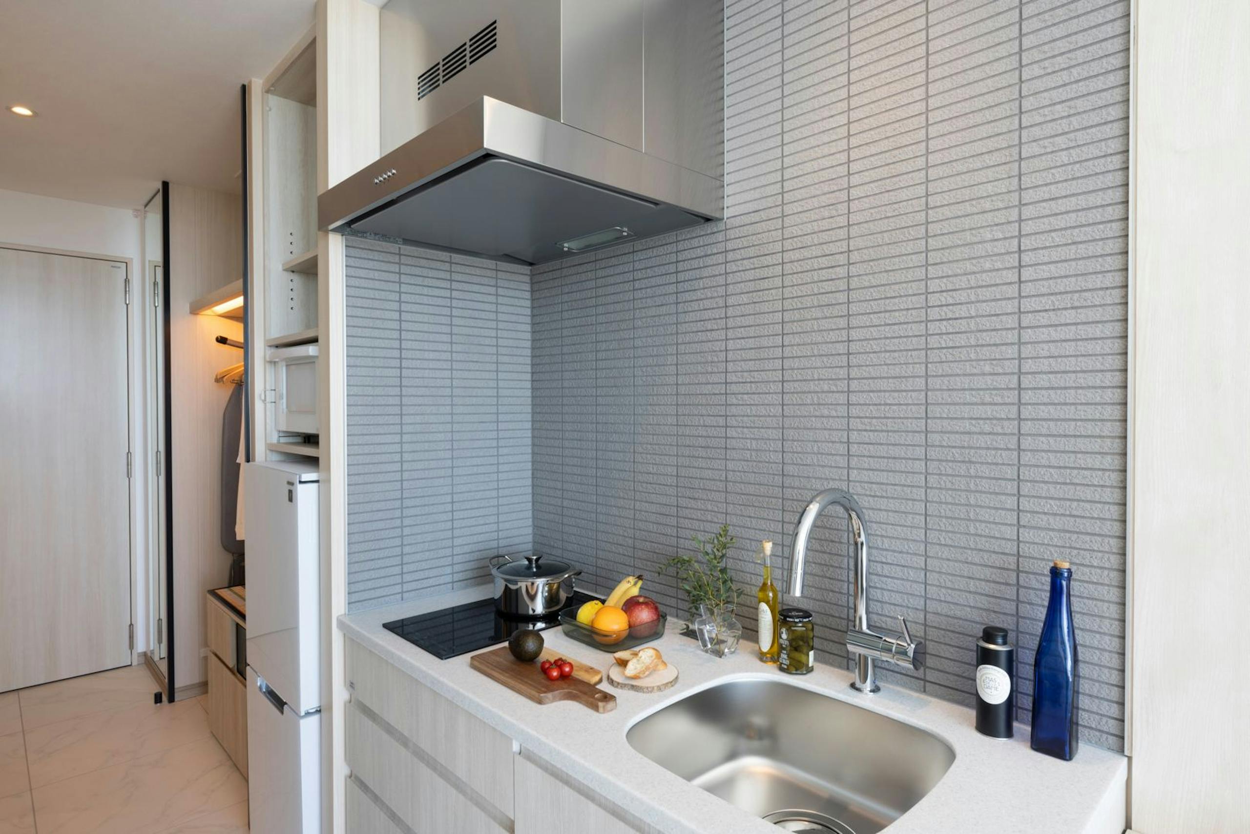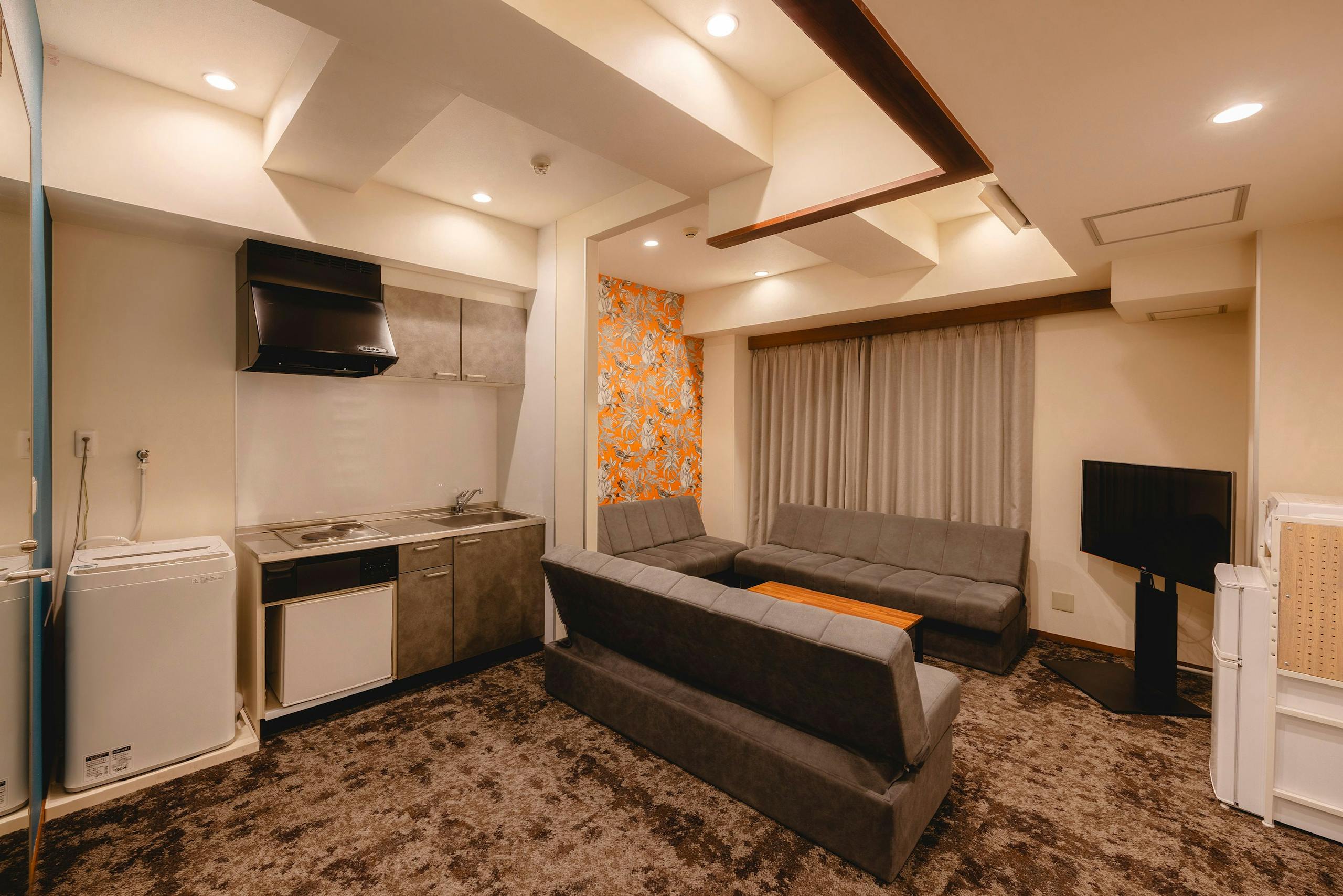 1泊から1か月以上の長期滞在でも快適に過ごせる客室は、食器、調理器具、IHクッキングヒーター、電子レンジ、オーブン、冷蔵庫、洗濯乾燥機(一部の部屋を除く)を完備。