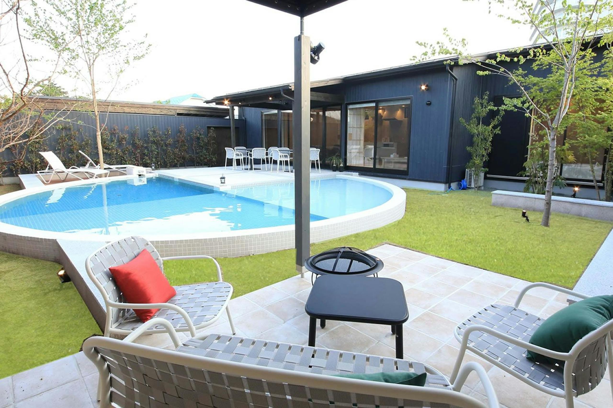 大自然の冒険テーマパーク「ネスタリゾート神戸」の中にあるロイヤルスイートは、最大8名まで宿泊できる大きな温水プール付きのヴィラ(一棟貸しの別荘)です。