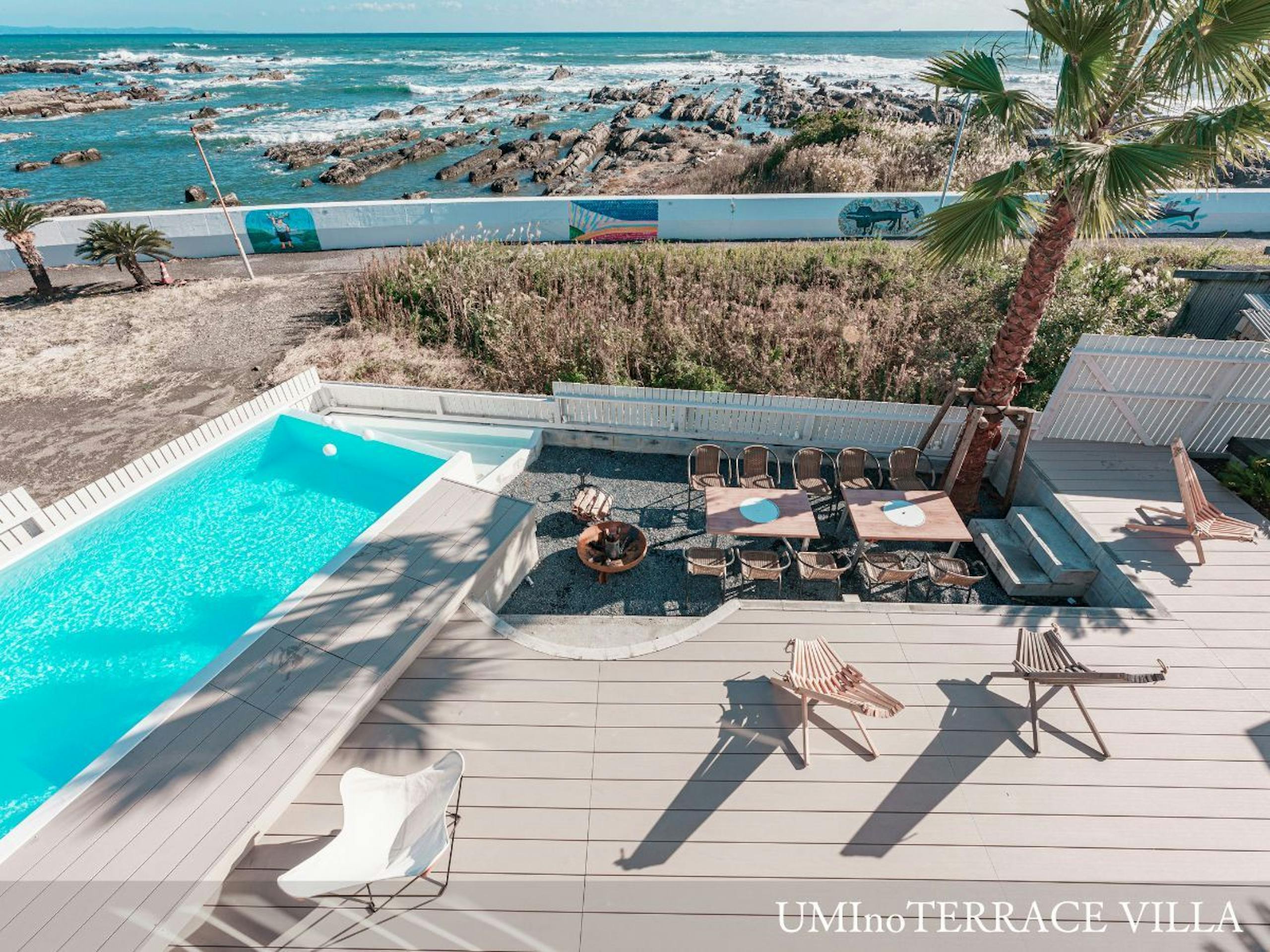 UMInoTERRACE(うみのてらす)は、温水プライベートプールが付いたオーシャンビューの貸別荘です。